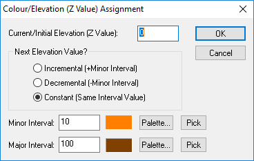 These options make it easy to assign constant, increasing, or decreasing elevation values to succesive polylines, simply by clicking on each in turn.